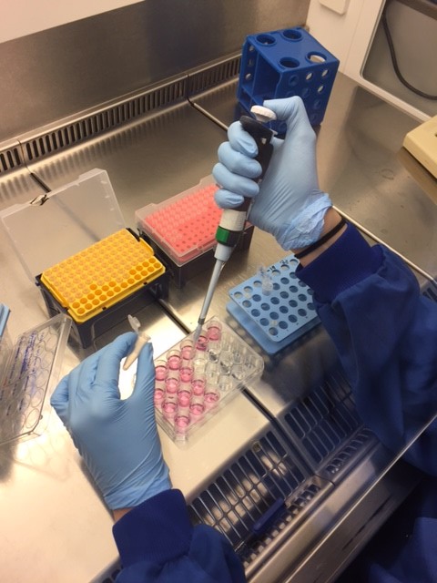 I am currently double-checking our hypothesis about some possible functions of the protein. Specifically, I am ‘knocking-down’ (ie reducing the amount of) C9ORF72 in healthy cells and seeing how this affects the cells’ mechanism. In order to knock-down the C9ORF72 protein, we use ‘small interfering RNA’ (siRNA), a tiny piece of RNA (a molecule similar to the DNA), which is able to target a specific gene and inhibit its translation into a protein.